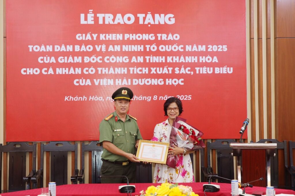 Chiều ngày 08/8/2025, được sự ủy quyền của Giám đốc Công an tỉnh Khánh Hòa, Phòng An ninh kinh tế phối hợp cùng Phòng tham mưu tổ chức lễ trao giấy khen của Bộ Công an cho PGS. TS. Đào Việt Hà – Bí thư Đảng ủy, Viện trưởng Viện Hải dương học vì đã có thành tích xuất sắc, tiêu biểu trong Phong trào toàn dân bảo vệ An ninh Tổ quốc năm 2025.
