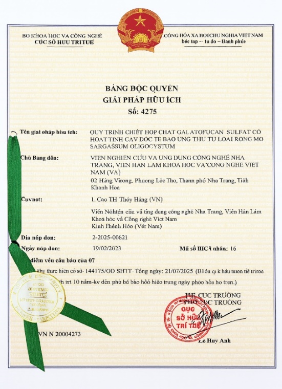- Nghiên cứu qui trình công nghệ chiết xuất, tinh chế và chuyển hóa các hợp chất có hoạt tính sinh học từ sinh vật biển