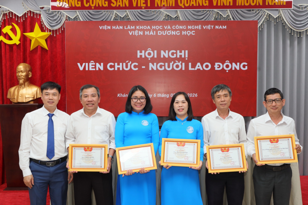 Sáng 06/02/2026, tại Hội trường Biển Đông (trụ sở 01 Cầu Đá, Nha Trang, Khánh Hòa), Viện Hải dương học đã tổ chức Hội nghị Viên chức – Người lao động nhằm tổng kết công tác năm 2025 và triển khai nhiệm vụ năm 2026 với sự tham dự của toàn thể viên chức và người lao động.