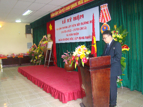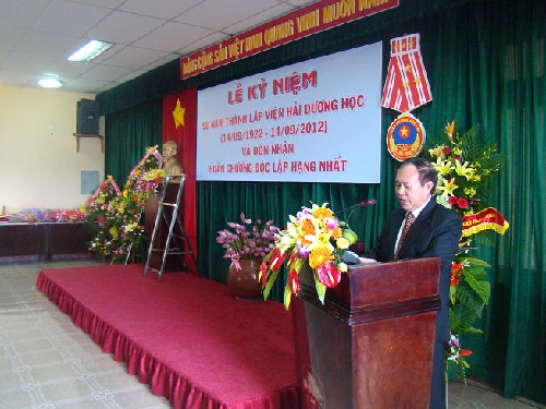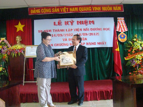 Ngày 14/9/2012, tại thành phố Nha Trang, Khánh Hòa, Viện Hải dương học đã trang trọng tổ chức Lễ kỷ niệm 90 năm ngày thành lập và đón nhận Huân chương Độc lập hạng Nhất. Tham dự lễ kỷ niệm có GS. Châu Văn Minh, Ủy viên Ban chấp hành Trung ương Đảng, Chủ tịch Viện KH&CNVN, GS. Nguyễn Đình Công, Phó Chủ tịch Viện KH&CNVN, đại diện lãnh đạo các đơn vị trực thuộc Viện KH&CNVN và các đồng chí nguyên là lãnh đạo Viện KH&CNVN, cùng toàn thể Ban lãnh đạo, cán bộ công chức, viên chức Viện Hải dương học qua các thời kỳ.