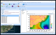 | Giao diện giới thiệu phần mềm Cơ sở dữ liệu | Bộ công cụ xử lý, hiện thị phân bố yếu tố môi trường | Giao diện thể hiện profile dòng chảy từ số liệu phân tích |
