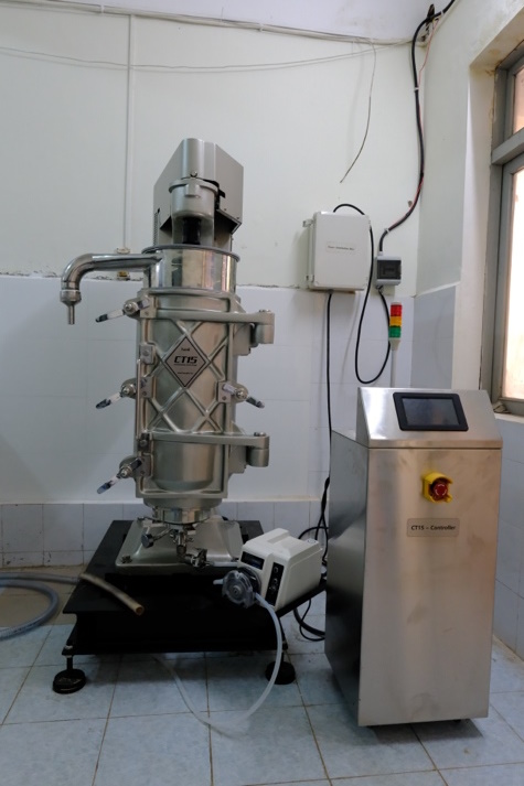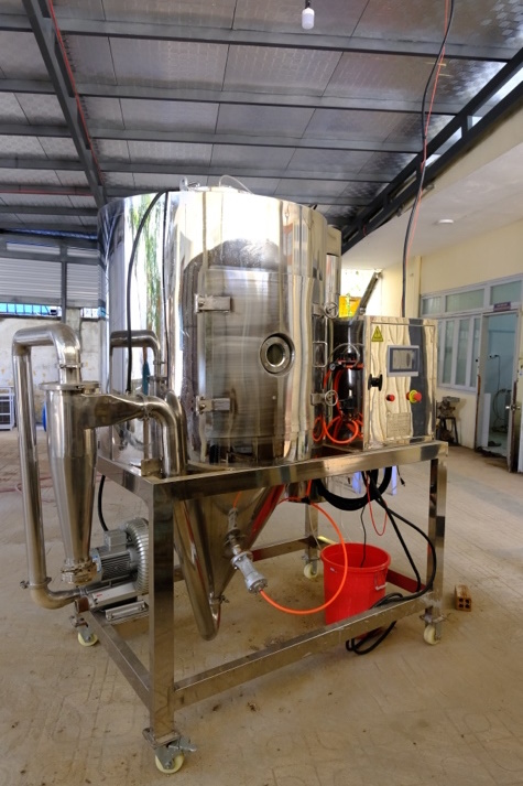 + Đầu phun: Loại ly tâm, tốc độ quay đĩa phun điều chỉnh được, 25.000 vòng/phút. Đường kính đĩa phun khoảng 50 mm.